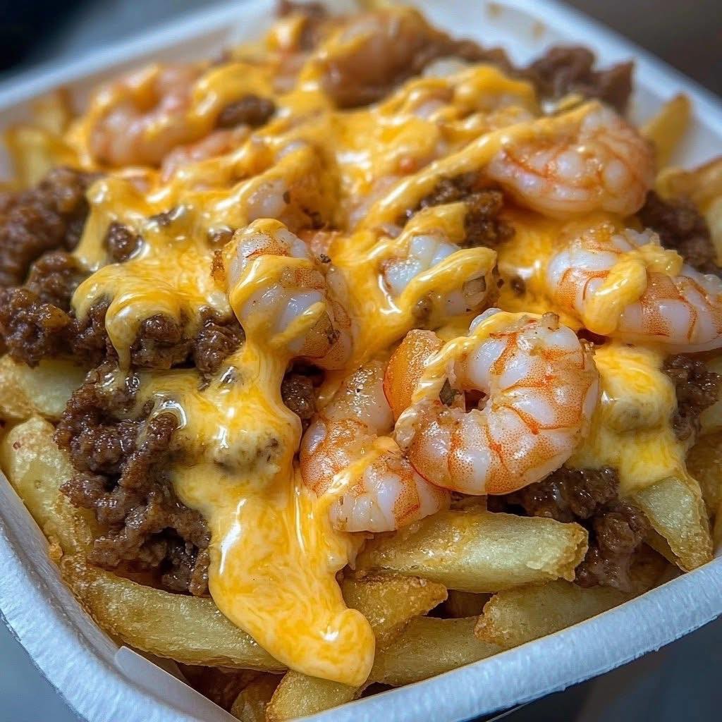 Get ready for ultimate comfort food! Crispy golden fries piled high with savory ground beef, juicy shrimp, and gooey melted cheddar cheese create a surf-and-turf feast that’s perfect for sharing—or not. This indulgent dish is bursting with flavor, easy to assemble, and perfect for game day, a casual dinner, or whenever you’re craving a serious snack attack.