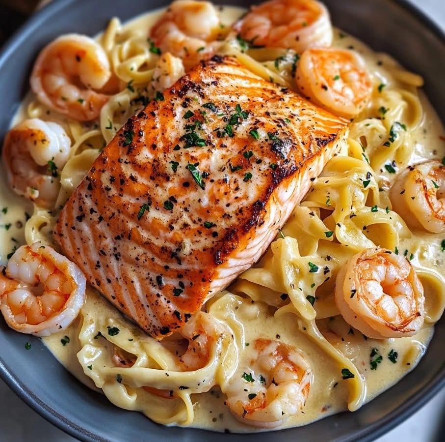 Salmon and Shrimp Alfredo Introduction If you’re craving something creamy, comforting, and just a little bit luxurious, this Salmon and