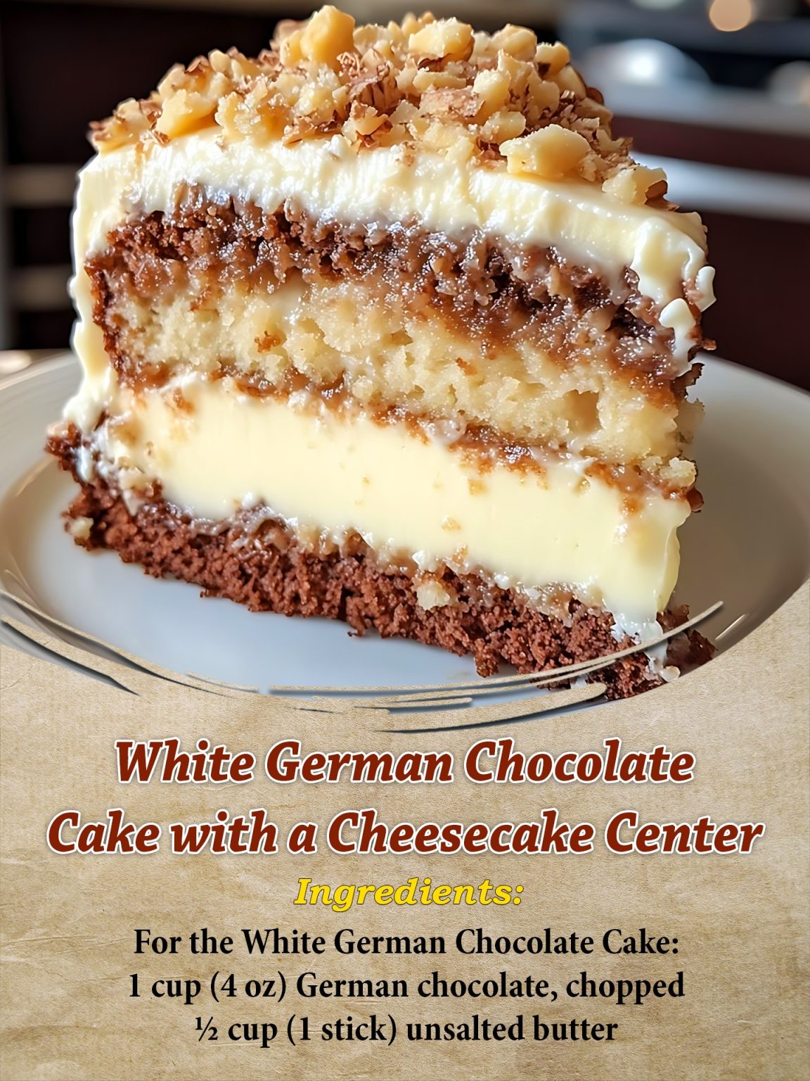 White German Chocolate Cake with a Cheesecake Center Introduction This White German Chocolate Cake with a Cheesecake Center is the