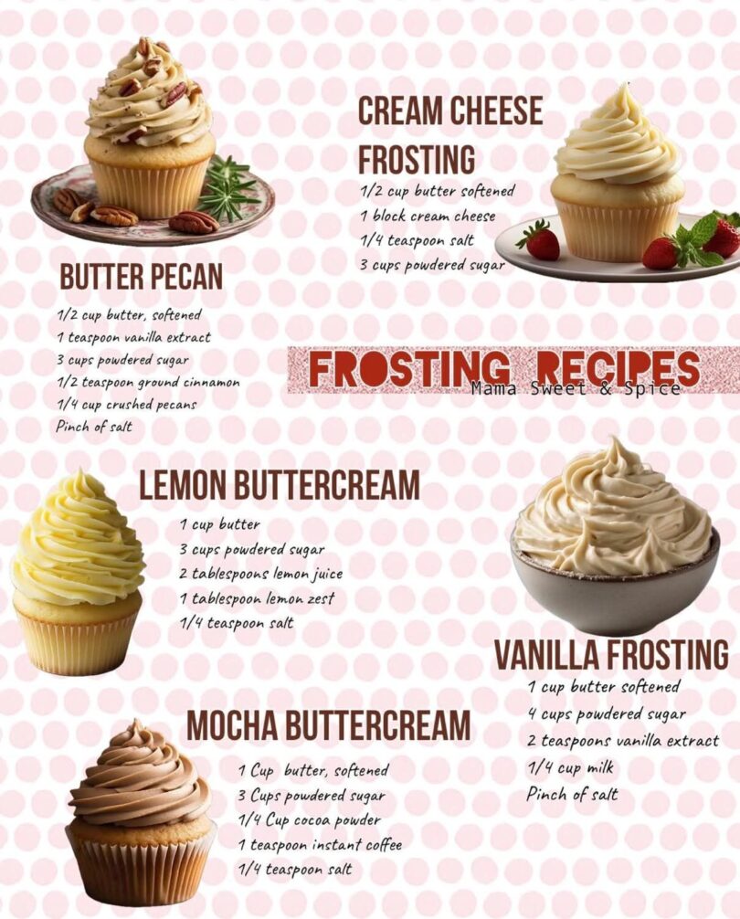 Homemade Frosting Recipes Here’s a collection of classic, versatile frosting recipes that will elevate any cake, cupcake, or dessert. Each