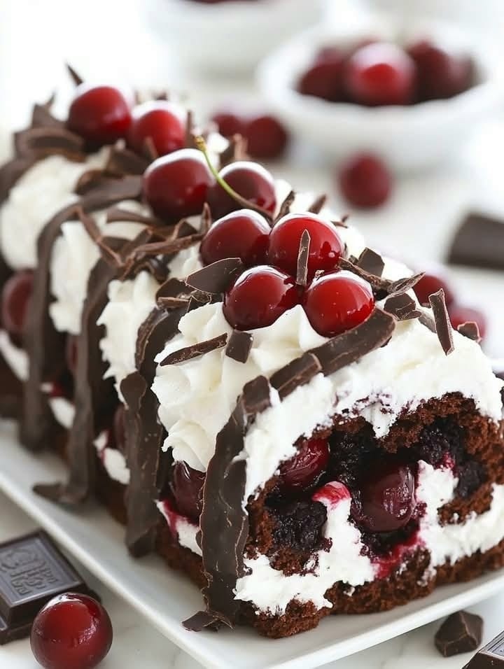 Heavenly Black Forest Roll Cake Introduction The Black Forest Roll Cake is a show-stopping dessert that’s both elegant and indulgent.