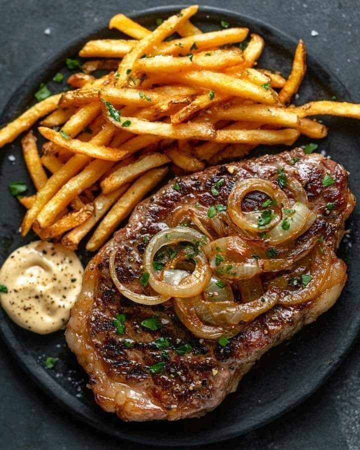 Ribeye Steak with Onions and Crispy Fries Introduction There’s something undeniably satisfying about a perfectly cooked ribeye steak paired with