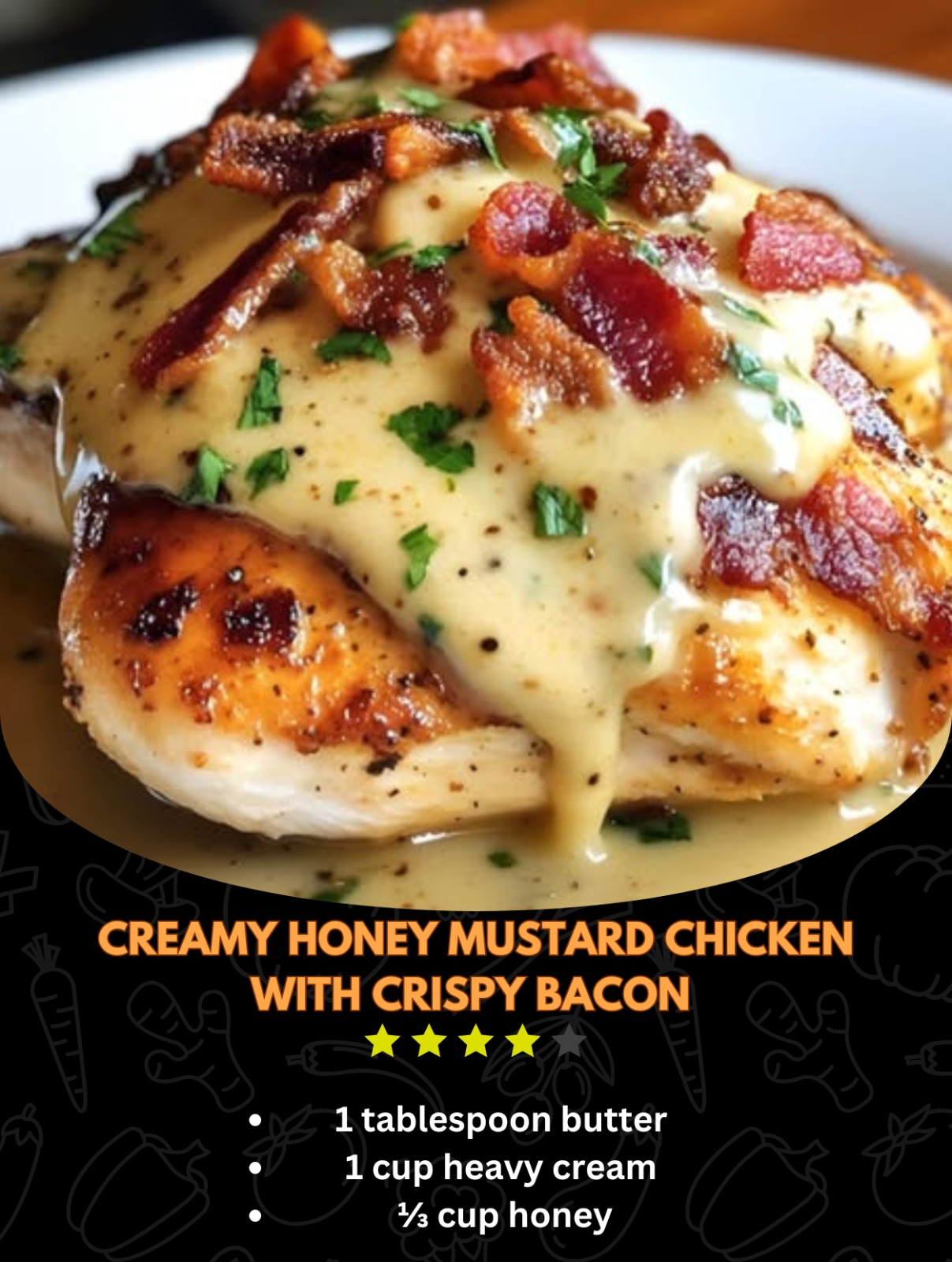 Creamy Honey Mustard Chicken with Crispy Bacon This Creamy Honey Mustard Chicken with Crispy Bacon is a guaranteed weeknight crowd-pleaser.