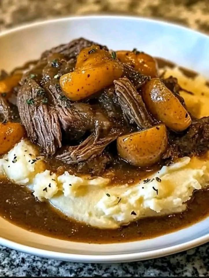 Pot Roast over Mashed Potatoes Introduction There’s something deeply comforting about a tender pot roast served over a bed of