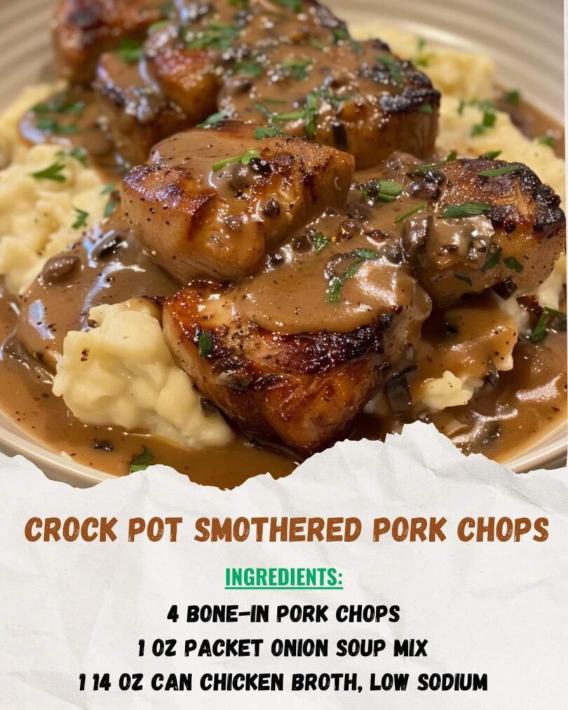 Slow Cooker Pork Chops in Creamy Onion Gravy Introduction There’s something deeply comforting about tender pork chops slowly simmered in