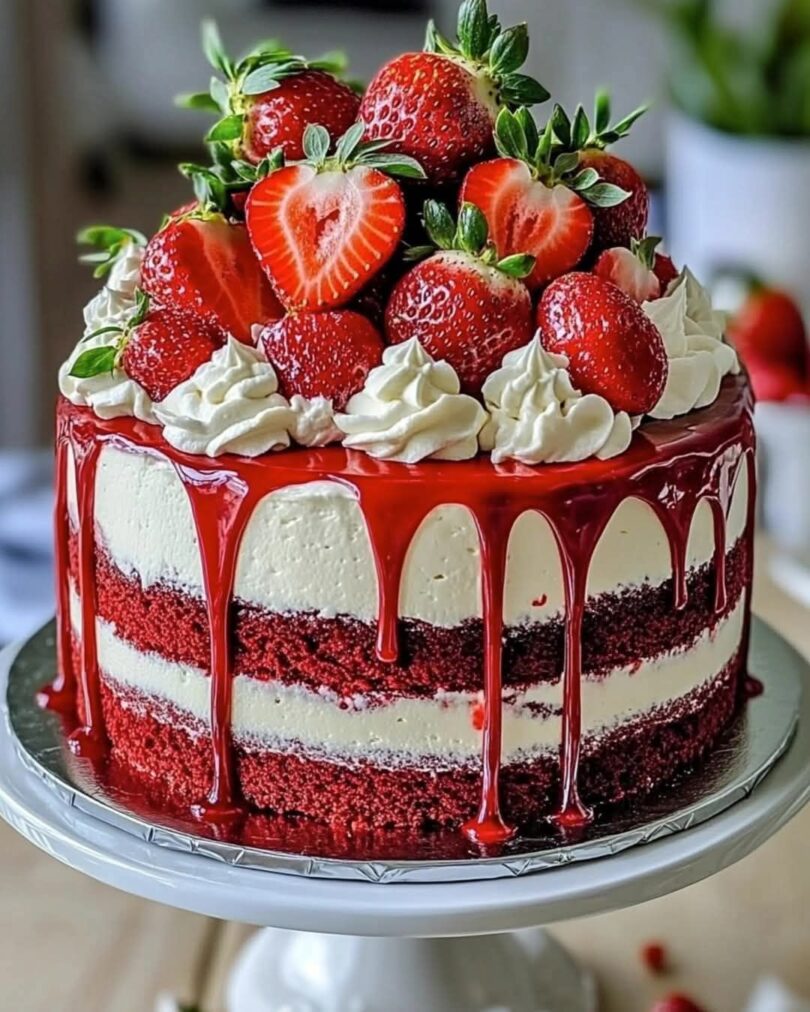 If there’s a dessert that embodies pure indulgence, it’s this Velvet Strawberry Cheesecake. Silky, creamy, and lusciously sweet, it combines the rich texture of cheesecake with the bright, fruity flavor of fresh strawberries. Topped with a glossy strawberry glaze and whipped cream, every slice feels like a little piece of heaven. Perfect for birthdays, celebrations, or a special treat just because, this cheesecake is as stunning as it is delicious—guaranteed to impress everyone at the table.